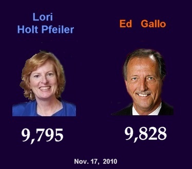 Nine days ago, Lori Holt Pfeiler reduced Ed Gallo’s lead to 33 votes