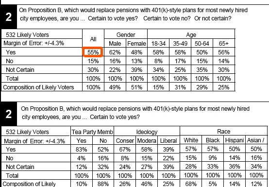 Stop the Presses! Prop. B’s  pension Reform is 40 points ahead in a new Survey USA/Channel 10 poll  released today.