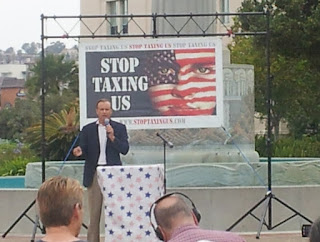 I attended the Anti-Tax Rally today in downtown San Diego held in front of the County Administration Building. Brian Bilbray was clearly the most famous speaker invited. He is in a competitive district, as I have previously discussed. The rally started with doctors in white lab coats speaking about the harm done to health care under the law. Doctor Gary Gonsalves led off the doctors’ segment. (It seems that Obama’s stunt at the White House has made it de rigueur to put the docs in lab coats.)