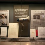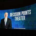The cornerstone of the Library is the Decision Points Theater. One of the principal focuses of this museum is to put the visitor in the shoes of the President. In the opening video, Bush remarks that you can’t truly appreciate the weight of the office until you’re sitting at the table and every advisor, cabinet secretary and intelligence official turns to you and asks “Mr. President – what do you want to do?” The Decision Points Theater is designed to give you that perspective. It is a six-minute, interactive, video game in which each participant selects a key moment during the Bush tenure. The decision point with the most votes becomes the simulation for the entire theater. The room as a whole and individually hears from several scripted video actors (House, Senate, taxpayer, Secretary, etc), uses a sliding scale to vote on how much they agree or disagree with the comments and then votes on what to do. There are also several interruptions on the big screen for “breaking news.” In my case, the room chose the financial crisis and voted to not do bailouts. President Bush then appears and gives his rationale for why he made the decision he did once again putting a human element into the decision.