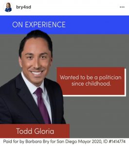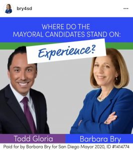 A Barbara Bry Instagram ad posted yesterday resulted in a Twitter reaction from Todd Gloria, which in turn is getting quite a response from a number of followers.