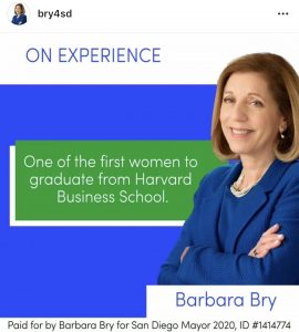 Barbara Bry has hit yet another low. She’s making fun of the dreams of a little boy of color to serve his hometown in her latest Instagram post. We can’t all go to Harvard and live in La Jolla, but San Diego is our city, too. #ForAllofUs