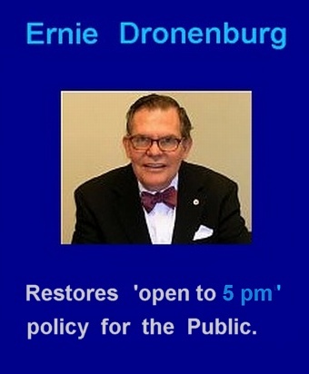 SD County court offices now close at 3:30 pm … Library, fire station and recreation center hours are cut back, but somehow San Diego County Assessor/Recorder/Clerk Ernie Dronenburg still bucks the trend. First, Ernie reopened the Kearny Mesa and Chula Vista offices closed to the public under an appointed Democrat predecessor toppled in last year’s election. Now Ernie has expanded public hours too, keeping doors open until 5:00 pm for people recording documents, getting copies of their marriage licenses, and the like. Ernie tells SD Rostra he did this with thrift and economy, not a higher budget. How does he do that when so many others cut back public service? SD Rostra’s own Erica Holloway theorizes it must be the Bow Tie !