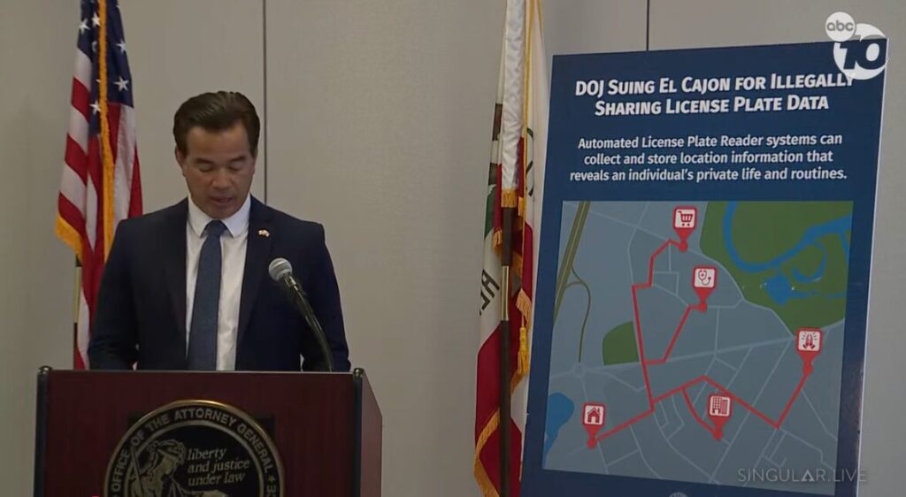 California Attorney General Rob Bonta held a press conference yesterday announcing his latest lawsuit — suing the City of El Cajon and the El Cajon Police Department for not complying with his interpretation of the law on license plate data.