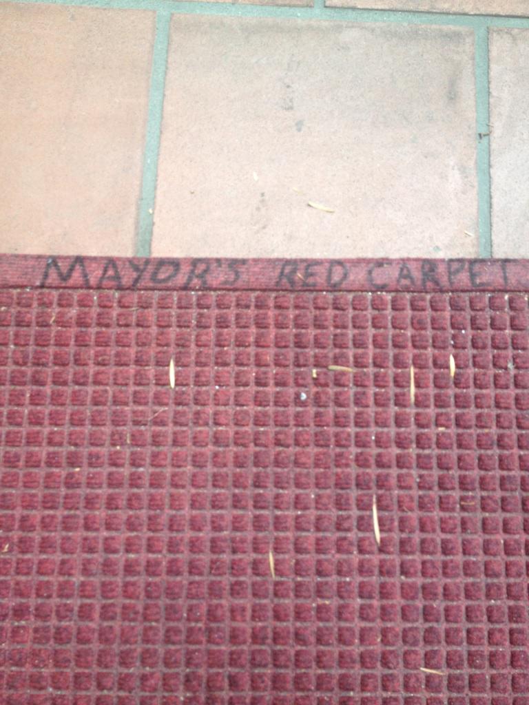City Hall insiders (or outsiders going in) say no one remembers this particular doormat being in place prior to yesterday, even without the added wording. Although Mayor Bob Filner has walked nicer carpets in the recent past.