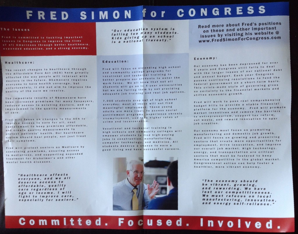 As for Simon, his campaign has yet to send anything at all our way. As in zilch.