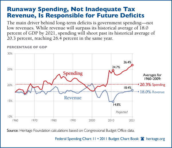 Just in case there was any doubt about my discussion on the fact that spending and revenue are both problems, but spending is more of the problem, I offer this chart from the Heritage Foundation.