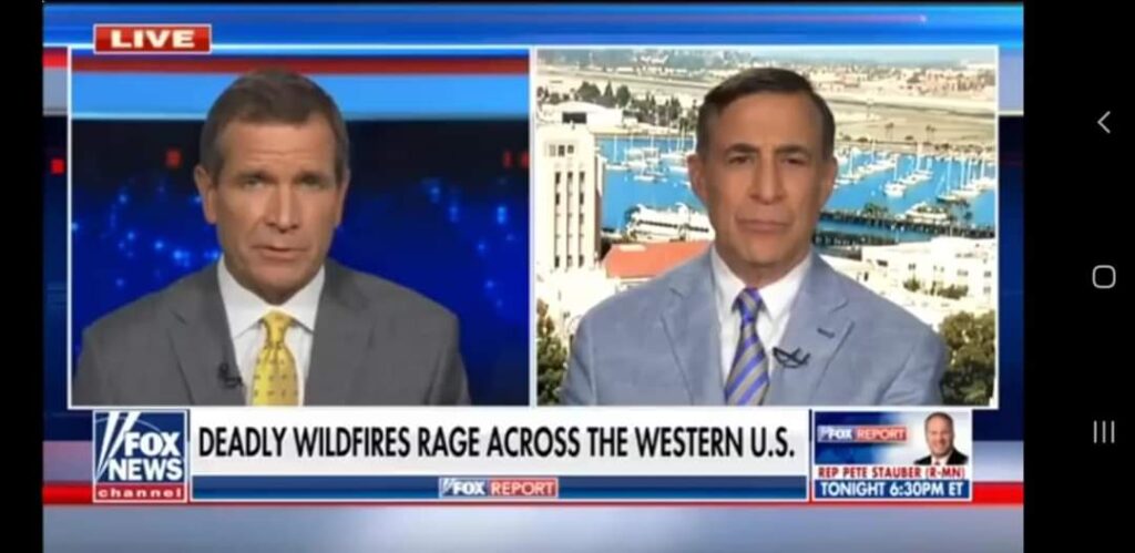 At the top is Ammar helping people who are evacuating the fire and below is Issa on Fox News talking about the fire with yachts in the background.